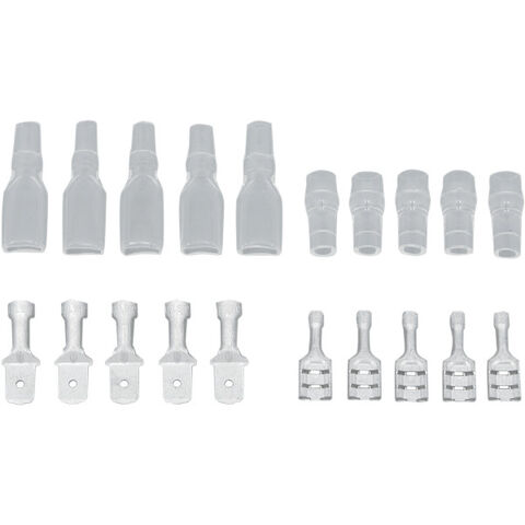 オス/メスのフラット端子とプラスチック端子スリーブ/カバーの各5個セット