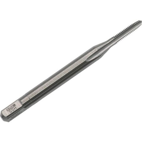 ・先端:中・精度:P1・精度表記:P級・呼び寸法:M1.7・ピッチ(mm):0.2・ねじ長さ(mm):3.6・全長(mm):36・シャンク径(mm):3・シャンク四角部(mm):2.5・下穴径(mm):1.51・加工ねじ:メートルねじ・表面処理:ノンコーティング・溝数:3・食い付山数:5山