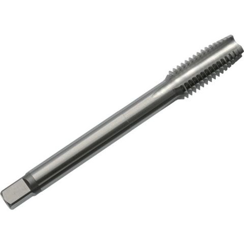 ・先端:中・精度:P2・精度表記:P級・呼び寸法:M10・ピッチ(mm):1.5・ねじ長さ(mm):23・全長(mm):120・シャンク径(mm):7・シャンク四角部(mm):5.5・下穴径(mm):8.6・加工ねじ:メートルねじ・表面処理:ノンコーティング・溝数:4溝