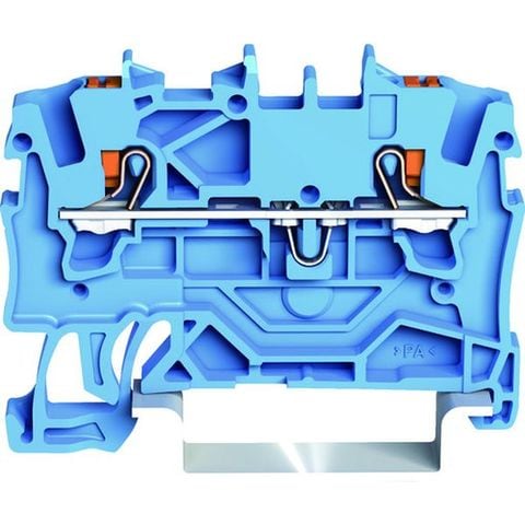 ・色:ブルー・ボタン色:オレンジ・長さ(mm):4.2・幅(mm):48.5・高さ(mm):33.0・タイプ:スプリング式中継用・定格:800V18A・適合:電線サイズ:0.25~1.5mm[[の2乗]]・適合機種:電線サイズ:0.25~1.5mm[[の2乗]]・接続電線数:2