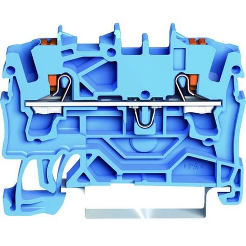 ・色:ブルー・ボタン色:オレンジ・長さ(mm):5.2・幅(mm):48.5・高さ(mm):33.0・タイプ:スプリング式中継用・定格:800V24A・適合:電線サイズ:0.25~2.5mm[[の2乗]]・適合機種:電線サイズ:0.25~2.5mm[[の2乗]]・接続電線数:2
