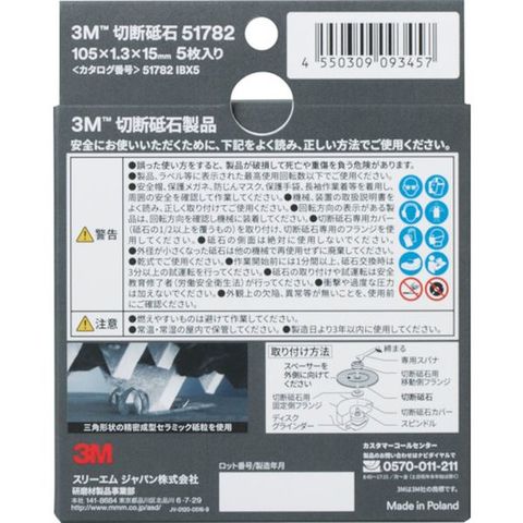 51782COW105X1.3IBX5 スリーエム 3M 切断砥石 51782 105x1.3x15mm 5枚入り