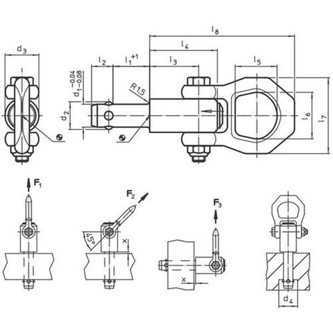 ・寸法(mm)d1:8・寸法(mm)d3:21.5・寸法(mm)l1:10・寸法(mm)l8:87.5・寸法(mm)取付穴H11:8・寸法(mm)l7:49・耐荷重F1(kN):1.5