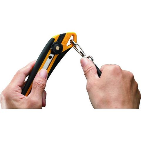 ・滑らず力のかけやすい形状を追求したXデザインラバーグリップです。・ワンタッチで刃が出せ、しっかりロックできるオートロック式です。・本体に設けた大きな穴には、落下防止用コードやカラビナなどの様々な金具を取り付けることができ、高所作業など様々な作業環境で活躍します。