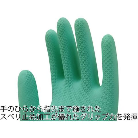 ・色:グリーン・サイズ:L・全長(cm):32.0・手のひら周り(cm):20.4・中指長さ(cm):8.4・厚さ(mm):0.35・すべり止め:指、手のひら部スベリ止め加工・食品衛生法:適合品