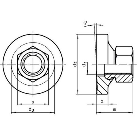 ・対辺寸法(mm):36・適合ボルト:M24・高さ(mm):42.5・フランジ径(mm):60・呼び寸法d1(mm):M24・フランジ高さa(mm):11・径d2(mm):60・高さm(mm):約42.5