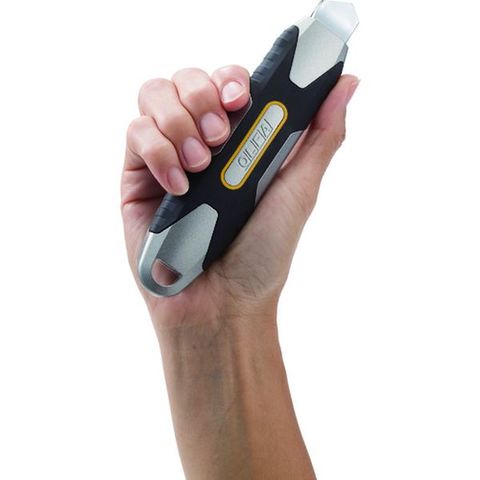 ・滑らずチカラのかけやすい形状を追求したX(エックス)デザインのラバーグリップを採用した大型カッターです。・アルミダイカスト製の本体に、焼き入れ加工とクロムメッキを施したステンレス製ブレードホルダーの強靭なモデルです。・X(エックス)デザイン・ハイパーシリーズの大型カッターナイフです。