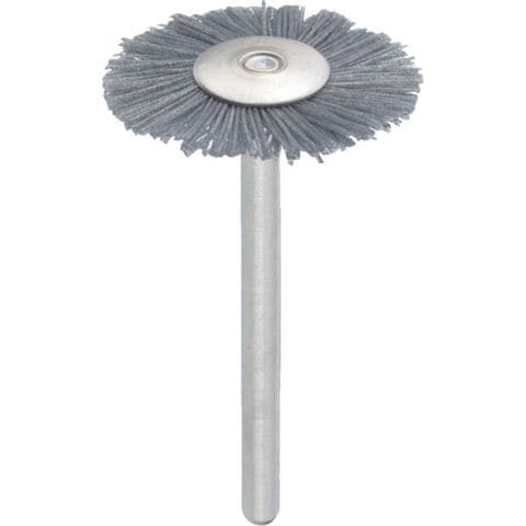 ・線径(mm):0.40・毛材:砥粒入ナイロン#320・外径(mm):23・軸長(mm):40・軸径(mm):3・最高使用回転数(rpm):15000・摘要:各種金属製品などの研磨、バリ取り、黒皮落とし