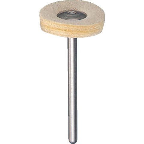 ・タイプ:フランネル・外径(mm):23・幅(mm):5・軸径(mm):3・軸長(mm):40・最高使用回転数(rpm):10000・色:白・摘要:ホコリ取り、最終艶出し・全長(mm):45・材質:フランネル(布)