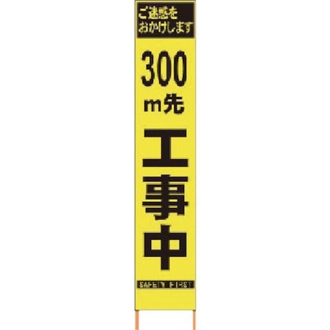 ・表示内容:300m先工事中・間口(mm):280・奥行(mm):40・高さ(mm):1560・色:蛍光レモン