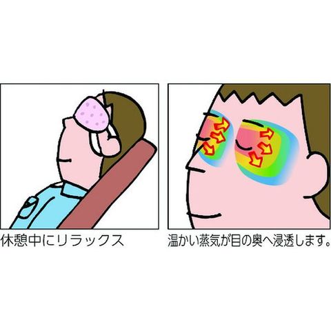 ・心地よい蒸気が働き続けた目と目元を温かく包み込み、気分リラックスするアイマスク。・快適温度約40℃、快適時間約20分。・開封するだけで温まるので、手軽に使えて外出先でも便利。・男女兼用サイズ。