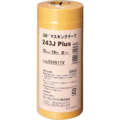 243J15 293-1052 スリーエム 3M マスキングテープ 243J Plus 15mmX18m 8巻入り