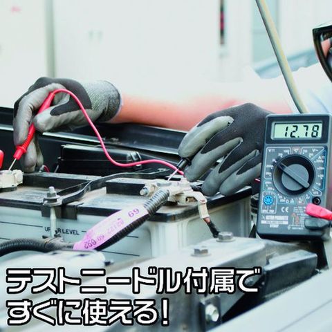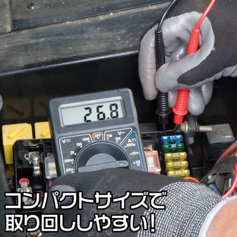・直流交流電圧、直流電流、抵抗測定など、様々な測定が可能な、視認性のよいデジタル式のメーターです。・広い測定レンジにより、自動車だけでなく家電製品などにも使用できます。・ダイヤル式の切り替えにより、手軽に操作できます。・ダイオードテスト、トランジスターチェック、矩形波出力測定や、ブザー音で知らせる導通チェック機能付きです。