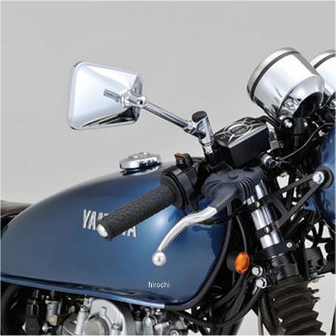 純正ミラーの衝撃緩衝装置をそのまま流用し、オフセットバーとハウジングのみ交換する。純正ミラーより広角な曲率R1000の鏡を使用し、より広い後部視界を確保。ロッド上をスライドさせてミラーハウジング位置を調整可能。振動の多いSR400等でも後方視界を安定して確保できるようにΦ12の極太ロッドを採用。同様に鏡の貼り付け強度をUPしたことで鏡の共振を減らし、クリアな視界を実現。