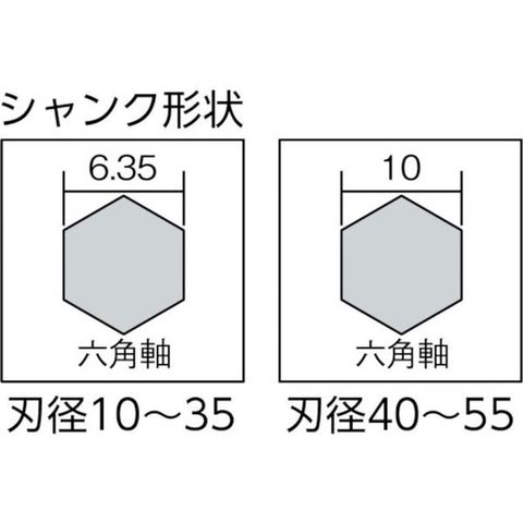 ・刃径(mm):35・溝長(mm):13・全長(mm):92・シャンク径(mm):6.35・適合機種:インパクトドライバー・電気ドリル・ボール盤(26386~26394、26399)、電気ドリル・ボール盤(26395~26398)