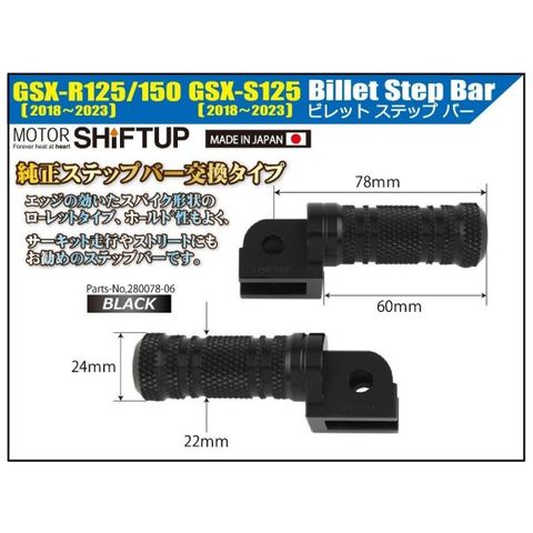 280078-06 シフトアップ SHIFTUP ビレットステップバー GSX-R125、GSX-S125、GSX-R150 黒