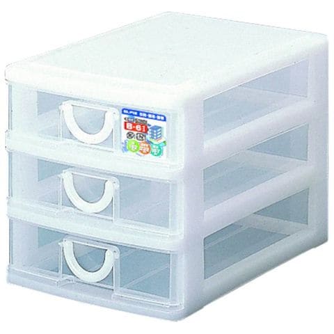 ・色:ホワイト・外形寸法(mm)間口:162・外形寸法(mm)奥行:232・外形寸法(mm)高さ:167・有効内寸(mm)間口:129・有効内寸(mm)奥行:200・有効内寸(mm)高さ:40・引出し色:半透明・タイプ:B-6・段数:3