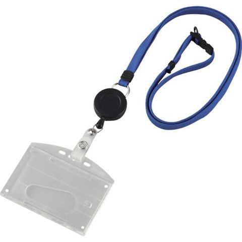 吊り下げ名札(リール式ストラップ) クリア/青 ハードケース 2枚収納式 吊名札346BLのレビュー