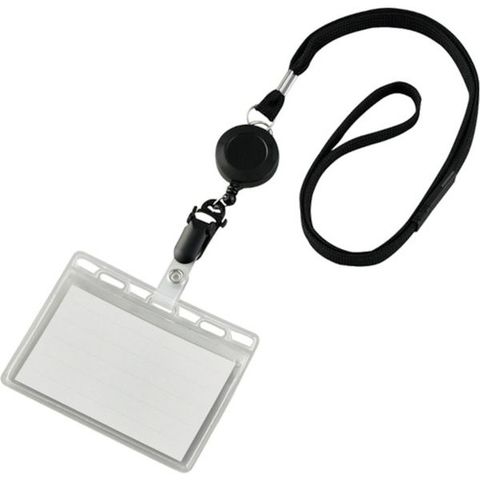 吊り下げ名札(リール式ストラップ) クリア/黒 ソフトケース 2枚収納式 NF-418-BK