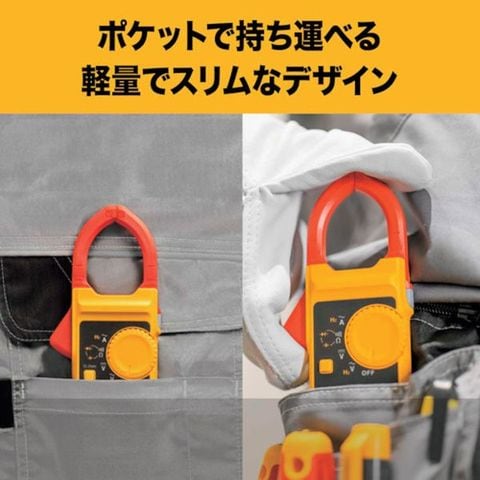 ・多彩な測定機能:電流、電圧、抵抗、導通、周波数(電圧・電流)及び、静電容量やダイオード・テストができます。・計量でスリムなデザイン:本体重量はわずか132g、厚みもスリムな2ミリ。ポケットや工具袋で持ち運べる軽量でコンパクトなデザインです。・密集した電線に簡単にフィット:ジョー幅は10ミリのスリム設計。幅が薄いため密集して挟みにくい電線も簡単にフィットします。・データホールド機能:高所や低所など計測中に液晶画面が見づらい場合、本体側面にあるホールドボタンを押して測定値を固定することで確認できます。・バックライト付き:白色バックライトで、暗所でも測定値をしっかりと確認できます。