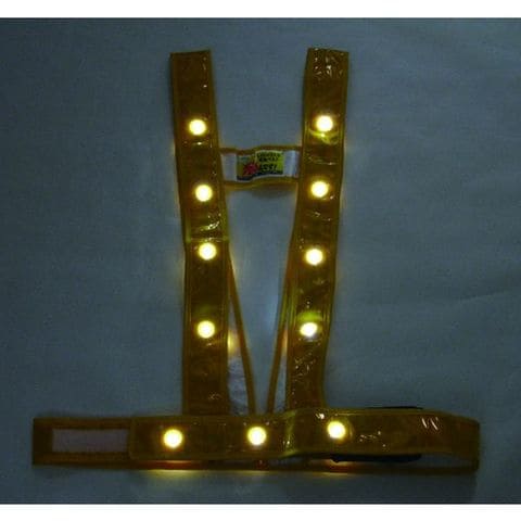 ・背中に反射帯付・プリズム式反射(カラー:ゴールド 、オレンジ)・反射テープ:幅50mm・LED22個(点滅式)