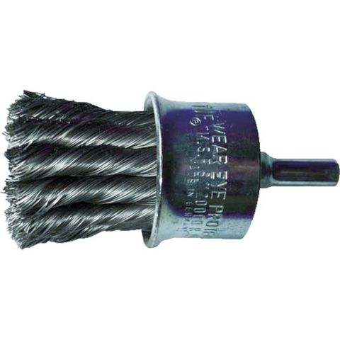 ・独自開発のハイカーボンスチールワイヤにより長寿命で安全性、研削性に優れています。・ノットタイプ(ワイヤを捩じり束にした)の強力切削用軸付ブラシです。