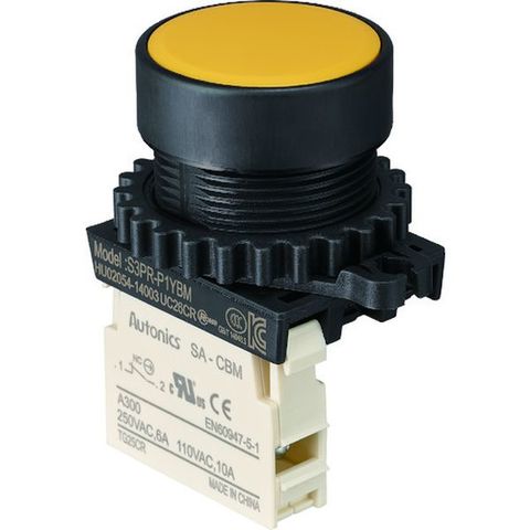 ・動作:モーメンタリー・接点構成:1b・ボタン色:黄・取付穴寸法(mm):30