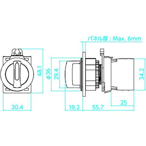 ・動作:90°2ノッチ・接点構成:1a-1b・取付穴寸法(mm):30色:白