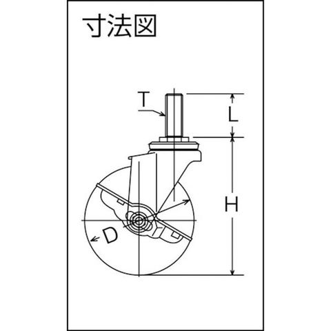 ・車輪径D(mm):65・タイプ:自在式(ストッパー付)・許容荷重(daN):40・許容荷重(kgf):40.8・車輪幅(mm):21・取付高H(mm):85・軸長L(mm):35・ねじT:M12・ねじピッチ(mm):1.75