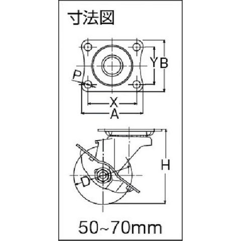 ・車輪径D(mm):125・タイプ:自在式(ストッパー付)・許容荷重(daN):150・許容荷重(kgf):153・車輪幅(mm):35・取付高H(mm):168・取付座A(mm):102・取付座B(mm):102・取付ピッチX(mm):75~80・取付ピッチY(mm):75~80・取付穴径P(mm):11・許容荷重(N):1500