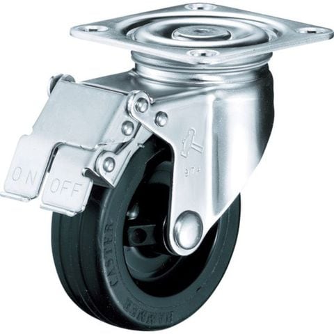 ・プレート式・自在式(ストッパー付)・車輪形状:ナイロンホイールゴム巻車輪