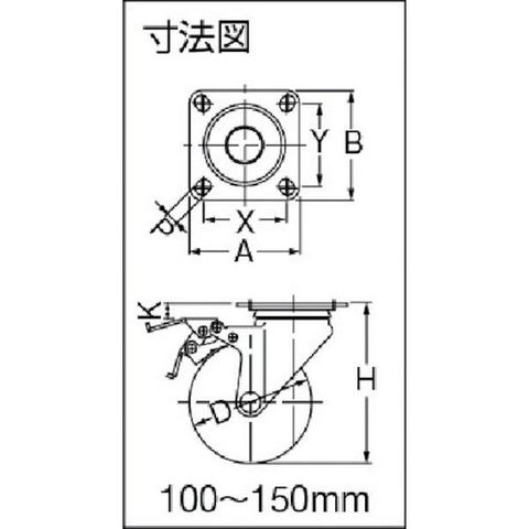 ・車輪径D(mm):65・タイプ:自在式(ストッパー付)・許容荷重(daN):70・許容荷重(kgf):71.4・車輪幅(mm):27・取付高H(mm):85・取付座A(mm):70・取付座B(mm):58・取付ピッチX(mm):55・取付ピッチY(mm):42・取付穴径P(mm):8.8・許容荷重(N):700