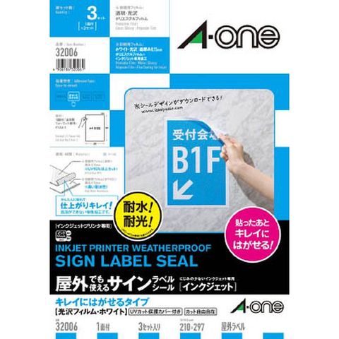 32006 A-one 屋外用サインラベル(インクジェット)再はくり 保護カバー付き 白