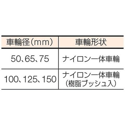 ・プレート式・固定式・車輪形状:ナイロン一体車輪(樹脂ブッシュ入り)