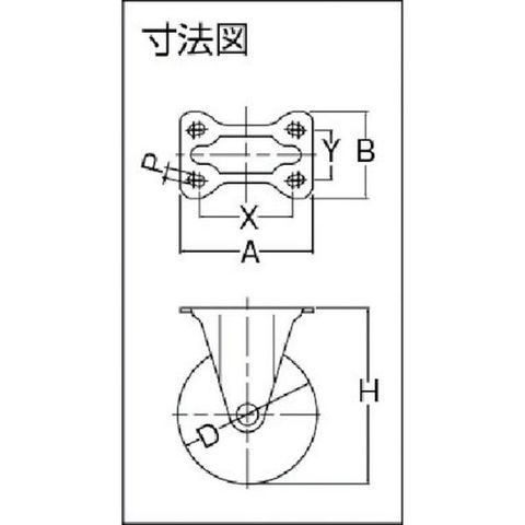 ・車輪径D(mm):65・タイプ:固定式・許容荷重(daN):70・許容荷重(kgf):71.4・車輪幅(mm):25・取付高H(mm):85・取付座A(mm):70・取付座B(mm):47・取付ピッチX(mm):55・取付ピッチY(mm):28・取付穴径P(mm):8.8・許容荷重(N):700