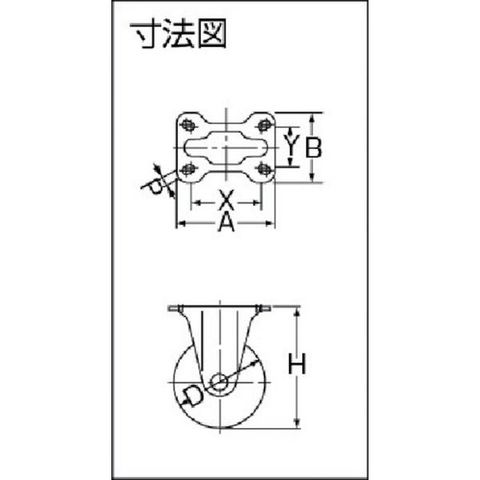 ・車輪径D(mm):65・タイプ:固定式・許容荷重(daN):70・許容荷重(kgf):71.4・車輪幅(mm):27・取付高H(mm):85・取付座A(mm):70・取付座B(mm):47・取付ピッチX(mm):55・取付ピッチY(mm):28・取付穴径P(mm):8.8・許容荷重(N):700