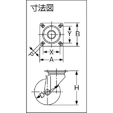 ・車輪径D(mm):75・タイプ:自在式・許容荷重(daN):80・許容荷重(kgf):81.6・車輪幅(mm):27・取付高H(mm):93・取付座A(mm):70・取付座B(mm):58・取付ピッチX(mm):55・取付ピッチY(mm):42・取付穴径P(mm):8.8・許容荷重(N):800