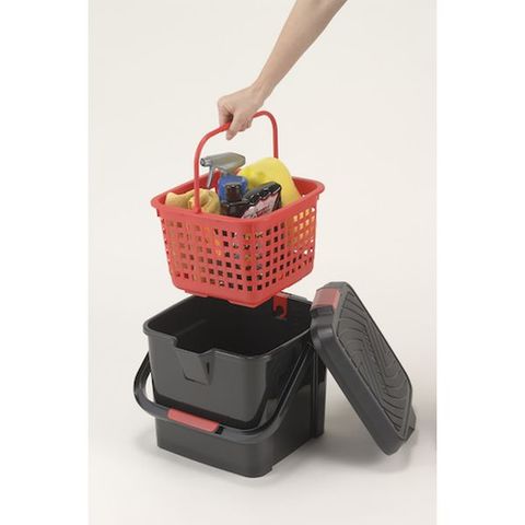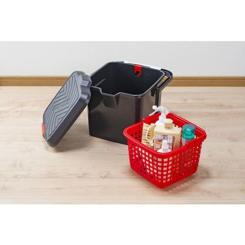 ・踏み台にも使える多用途バケツ収納バスケット付き。