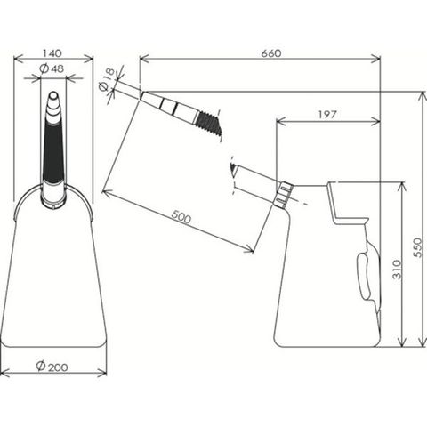 ・容量(ml):5000・目盛間隔(ml):500・直径(mm):200・高さ(mm):550・ノズル長(mm):500・容量(L):5・奥行(mm):430・幅(mm):200
