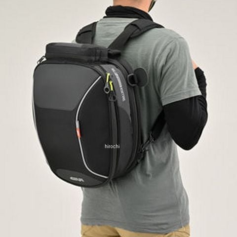 フルフェイス1個が収納できてバックパックにもなるシートバッグ。ショルダーベルトはシートバッグ内に収納できます。
