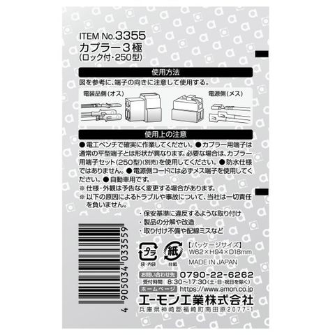 使用可能電力:DC12V車200W以下、DC24V車400W以下