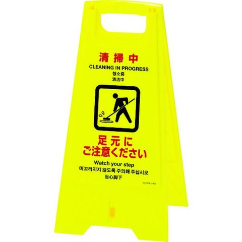 ・表示内容:清掃中・足元にご注意ください・間口(mm):310・奥行(mm):329・高さ(mm):604・色:イエロー・折りたたみ時の厚み(mm):28