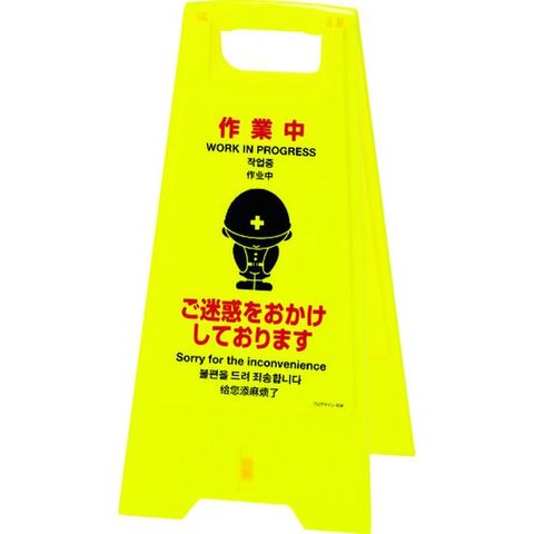 ・表示内容:作業中・ご迷惑をおかけしております・間口(mm):310・奥行(mm):329・高さ(mm):604・色:イエロー・折りたたみ時の厚み(mm):28