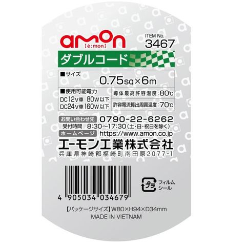 3467 エーモン ダブルコード 0.75-6m 赤/黒