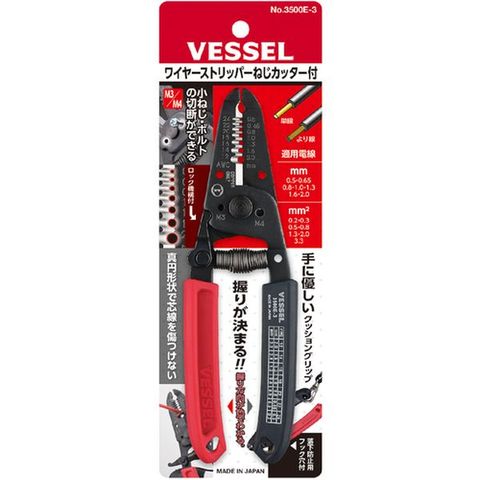 3500E3 (株)ベッセル ベッセル ワイヤーストリッパーねじカッター付 No.3500E-3(単線・より線用)