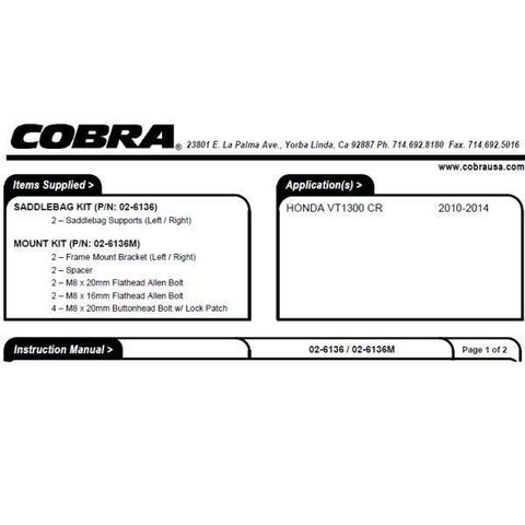 コブラ COBRA サドルバッグサポート 02-6136用マウントキット 10年以降 VT1300CRのレビュー