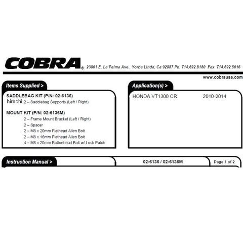 コブラ COBRA サドルバッグサポート 10年-14年 VT1300CR