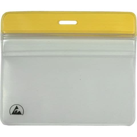 ・黄色の帯とESDシンボルマークにより見易く、この名札ホルダーを付けている人がESD保護対策をしていることが周囲に一目でわかります。・特注品での制作も可能です。・内側はアンチ・プリント、非ESDビニール付きなので、お客様の書類からインクが書類ホルダーに移りません。