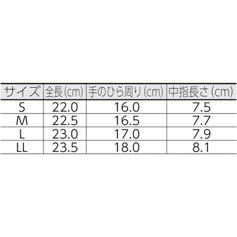 ・色:ブルー・サイズ:LL・全長(cm):23.5・手のひら周り(cm):18.0・中指長さ(cm):8.1・厚さ(mm):0.8・ゲージ数:13