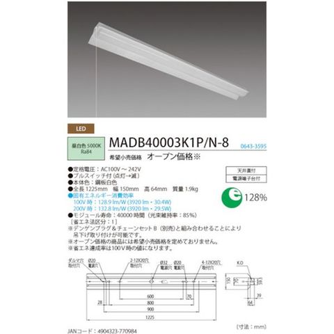 MADB40005K1PN8 (株)ホタルクス ホタルクス LED一体型ベース照明両反射笠形プルスイッチ付4000lm